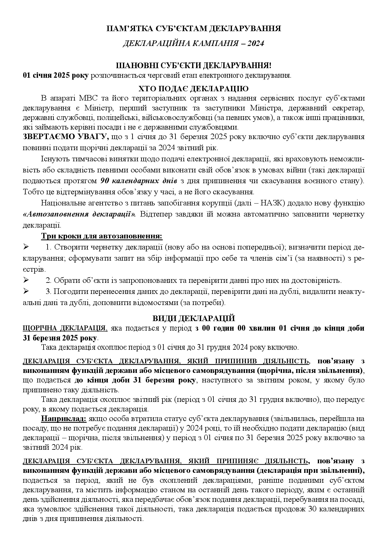 ПАМЯТКА щодо порогів декларування за 2025 рік при поданні декларації у 2026 році